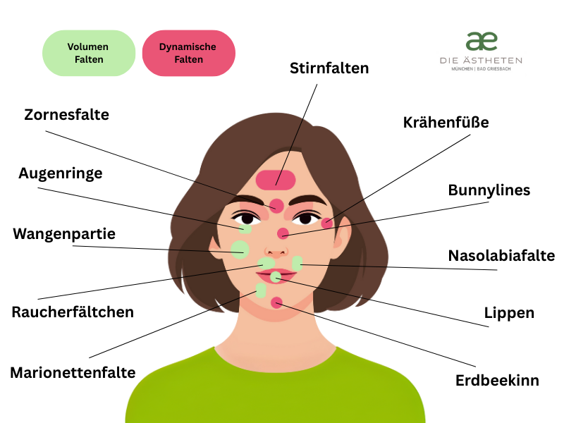 Häufig behandelte Regionen der Faltenunterspritzung